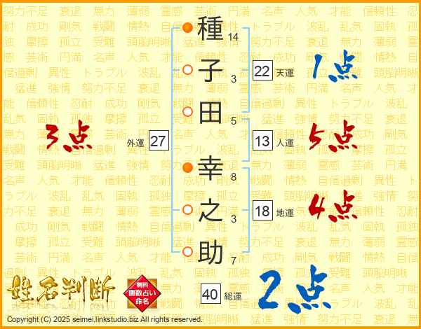 種子田幸之助さんの天運は22画の1点!