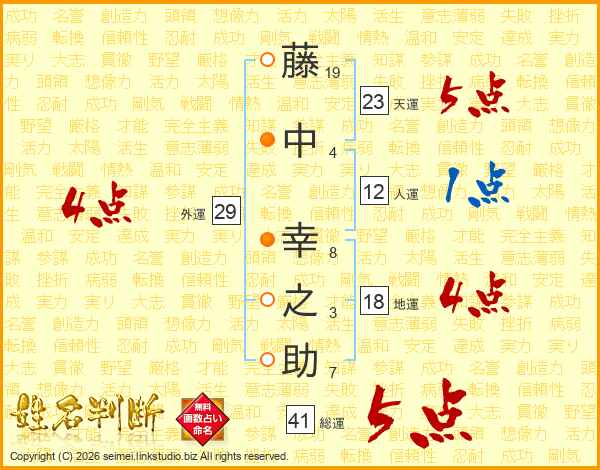 藤(19画)中(4画) 幸(8画)之(3画)助(7画)