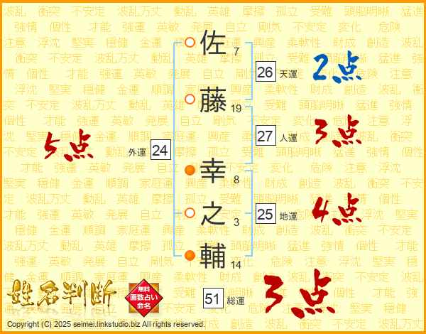 佐(7画)藤(19画) 幸(8画)之(3画)輔(14画)