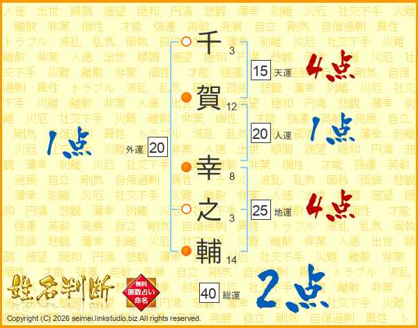 千(3画)賀(12画) 幸(8画)之(3画)輔(14画)