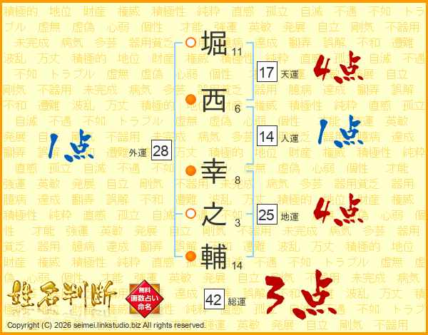 堀西幸之輔さんの天運は17画の4点!