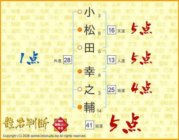小松田幸之輔さんの総運は41画の5点!