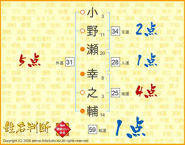 小野瀬幸之輔さんの総運は59画の1点!