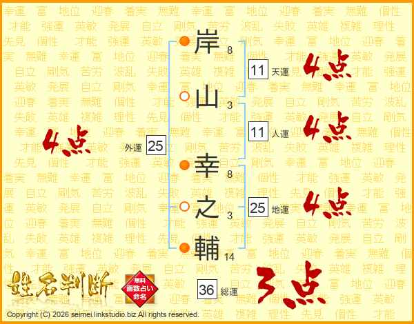岸山幸之輔さんの地運は25画の4点!