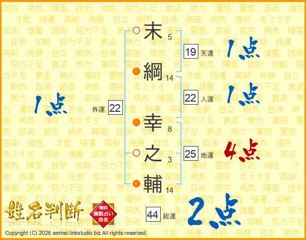 末(5画)綱(14画) 幸(8画)之(3画)輔(14画)
