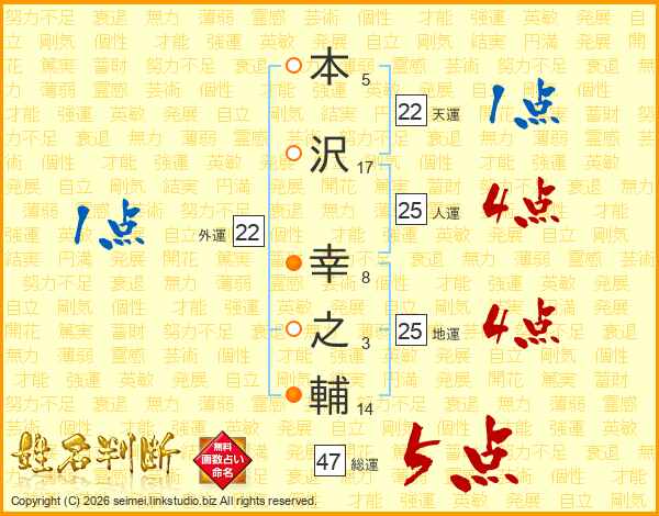 本沢幸之輔さんの総運は47画の5点!