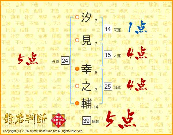 汐見幸之輔さんの総運は39画の5点!