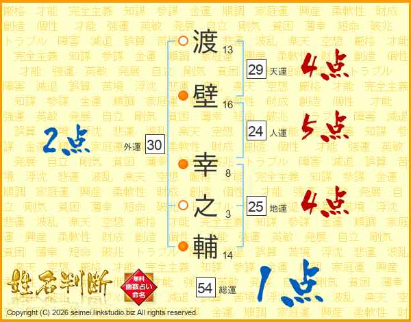 渡壁幸之輔さんの総運は54画の1点!