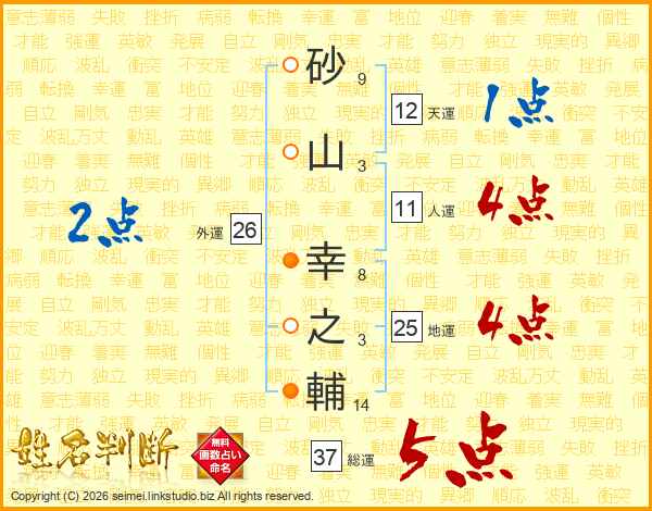 砂山幸之輔さんの総運は37画の5点!