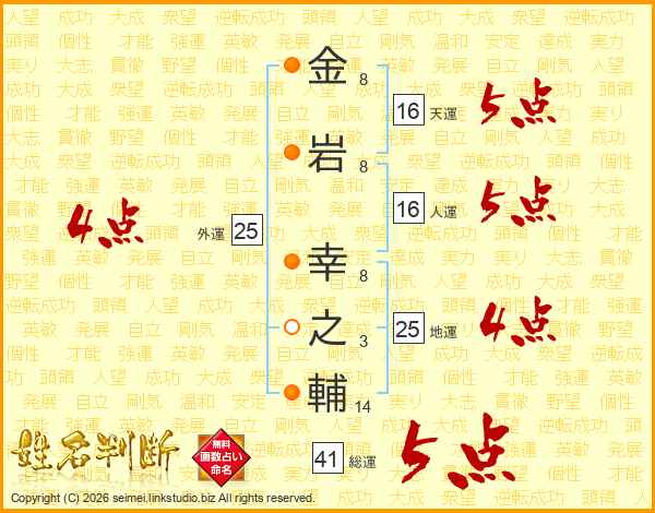 金(8画)岩(8画) 幸(8画)之(3画)輔(14画)