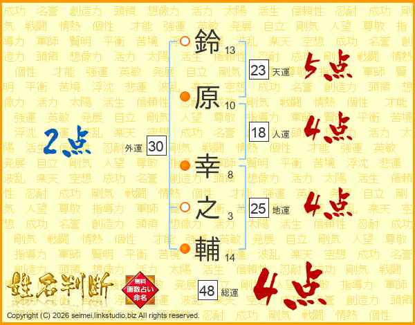 鈴(13画)原(10画) 幸(8画)之(3画)輔(14画)
