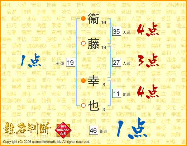 衞藤幸也さんの地運は11画の4点!