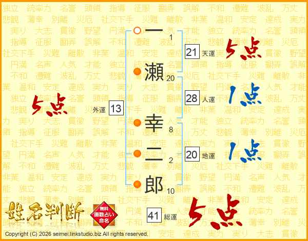 一瀬幸二郎さんの総運は41画の5点!