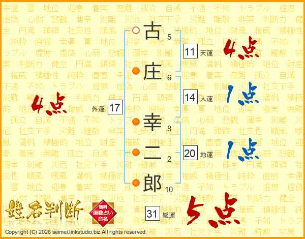 古庄幸二郎さんの総運は31画の5点!