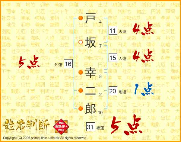 戸坂幸二郎さんの総運は31画の5点!