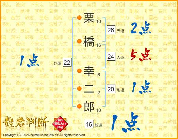 栗橋幸二郎さんの総運は46画の1点!