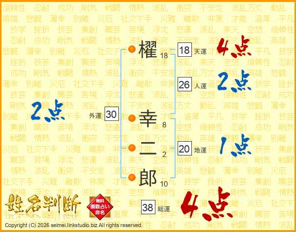 櫂幸二郎さんの総運は38画の4点!
