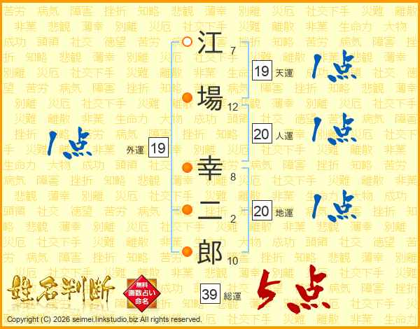 江場幸二郎さんの総運は39画の5点!
