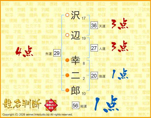 沢辺幸二郎さんの総運は56画の1点!