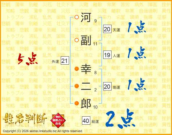 河副幸二郎さんの外運は21画の5点!