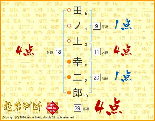 田ノ上幸二郎さんの外運は18画の4点!