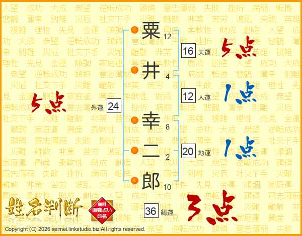 粟(12画)井(4画) 幸(8画)二(2画)郎(10画)