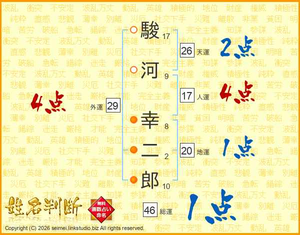 駿河幸二郎さんの総運は46画の1点!