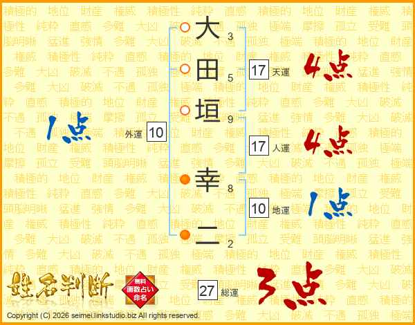 大田垣幸二さんの総運は27画の3点!