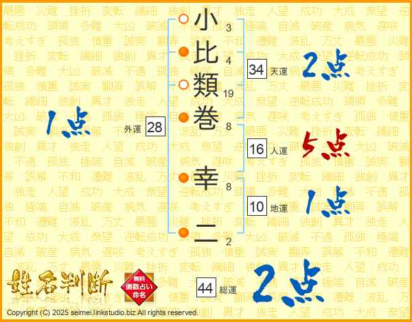 小(3画)比(4画)類(19画)巻(8画) 幸(8画)二(2画)