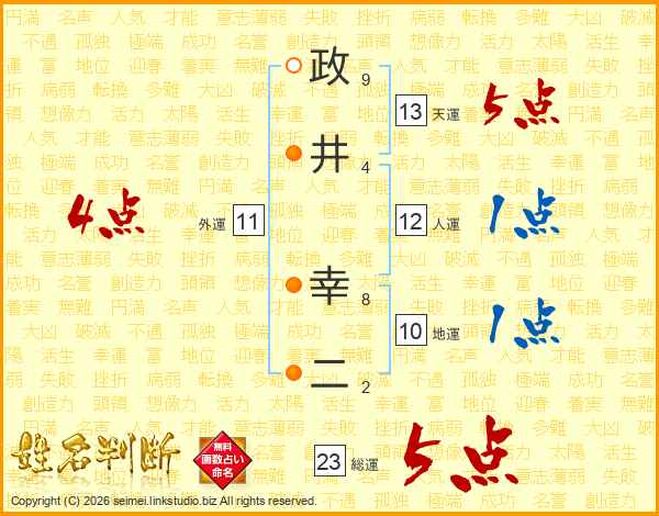 政井幸二さんの総運は23画の5点!