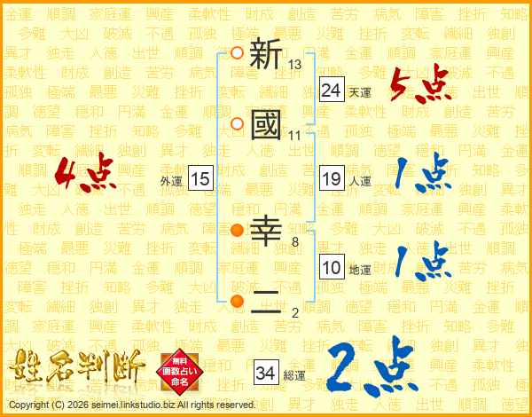 新國幸二さんの天運は24画の5点!