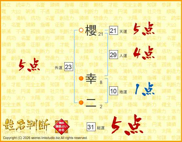 櫻幸二さんの総運は31画の5点!