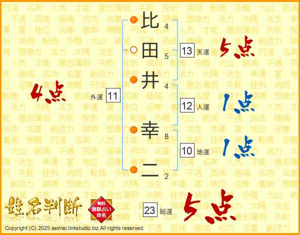比田井幸二さんの総運は23画の5点!