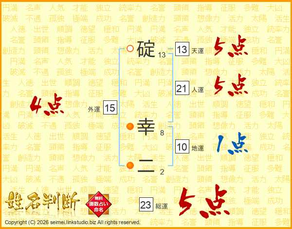 碇幸二さんの人運は21画の5点!