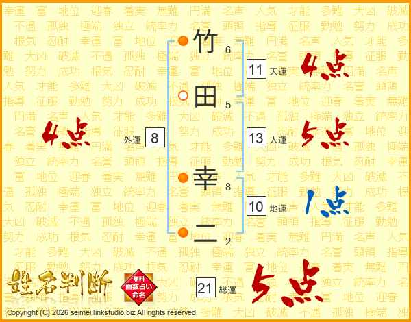 竹田幸二さんの総運は21画の5点!