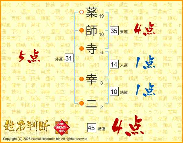 薬師寺幸二さんの総運は45画の4点!