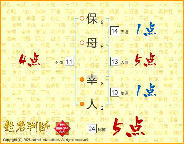 保(9画)母(5画) 幸(8画)人(2画)