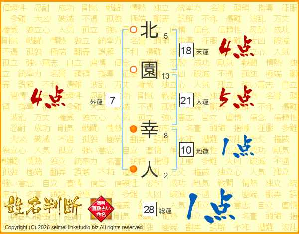 北園幸人さんの人運は21画の5点!