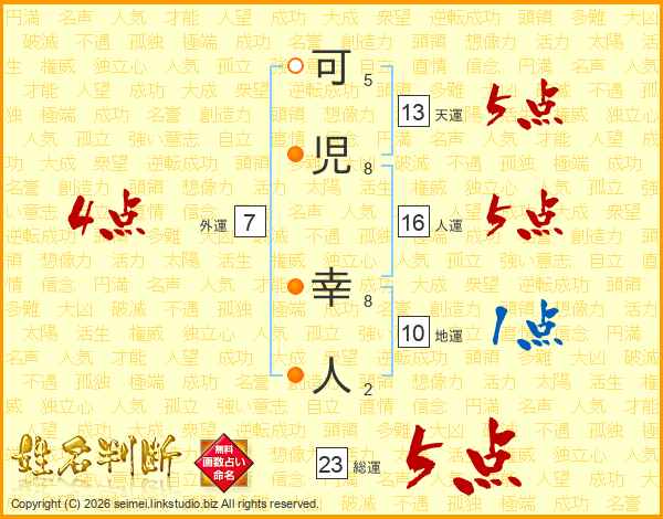 可児幸人さんの総運は23画の5点!