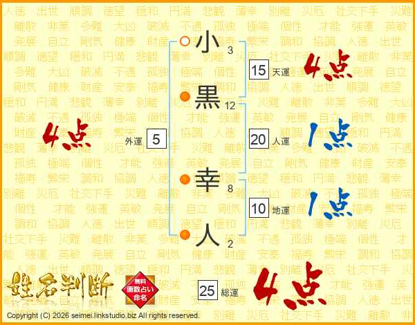 小黒幸人さんの総運は25画の4点!