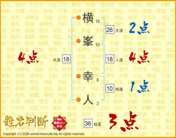 横峯幸人さんの天運は26画の2点!