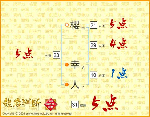 櫻幸人さんの総運は31画の5点!