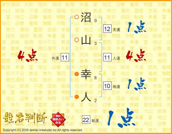 沼山幸人さんの人運は11画の4点!