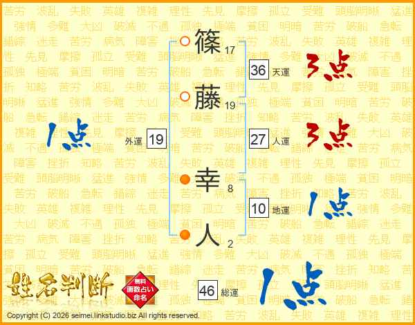 篠藤幸人さんの人運は27画の3点!
