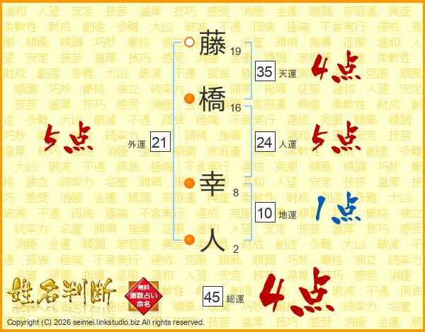 藤橋幸人さんの総運は45画の4点!