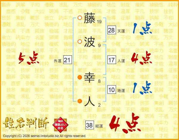 藤波幸人さんの総運は38画の4点!