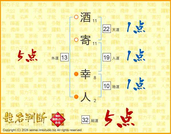 酒寄幸人さんの総運は32画の5点!