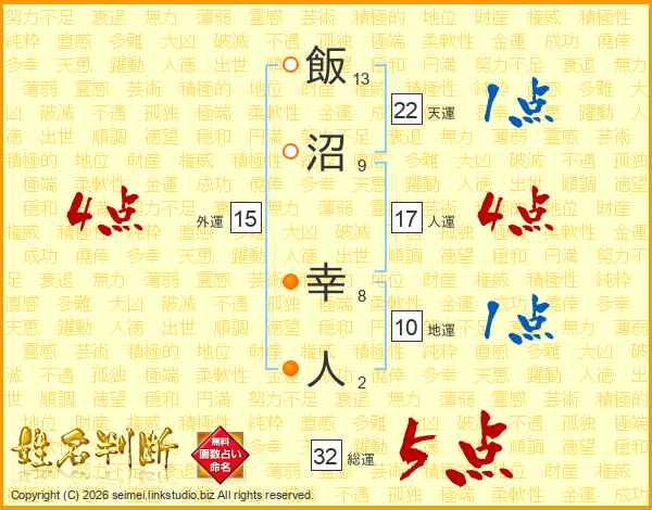 飯沼幸人さんの総運は32画の5点!