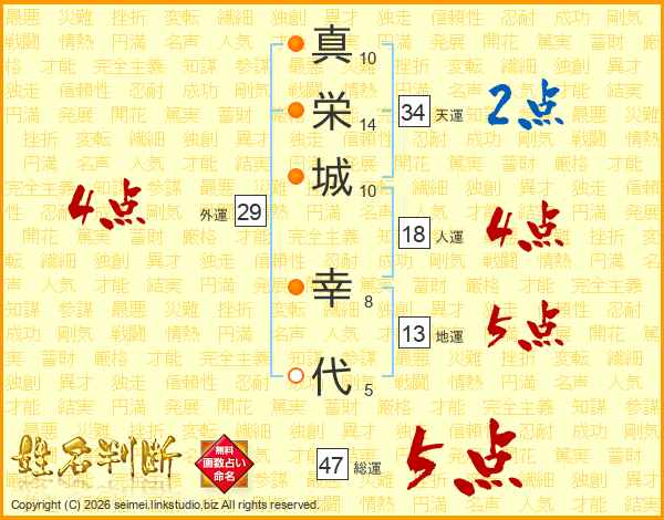 真(10画)栄(14画)城(10画) 幸(8画)代(5画)