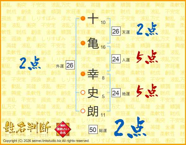 十亀幸史朗さんの天運は26画の2点!